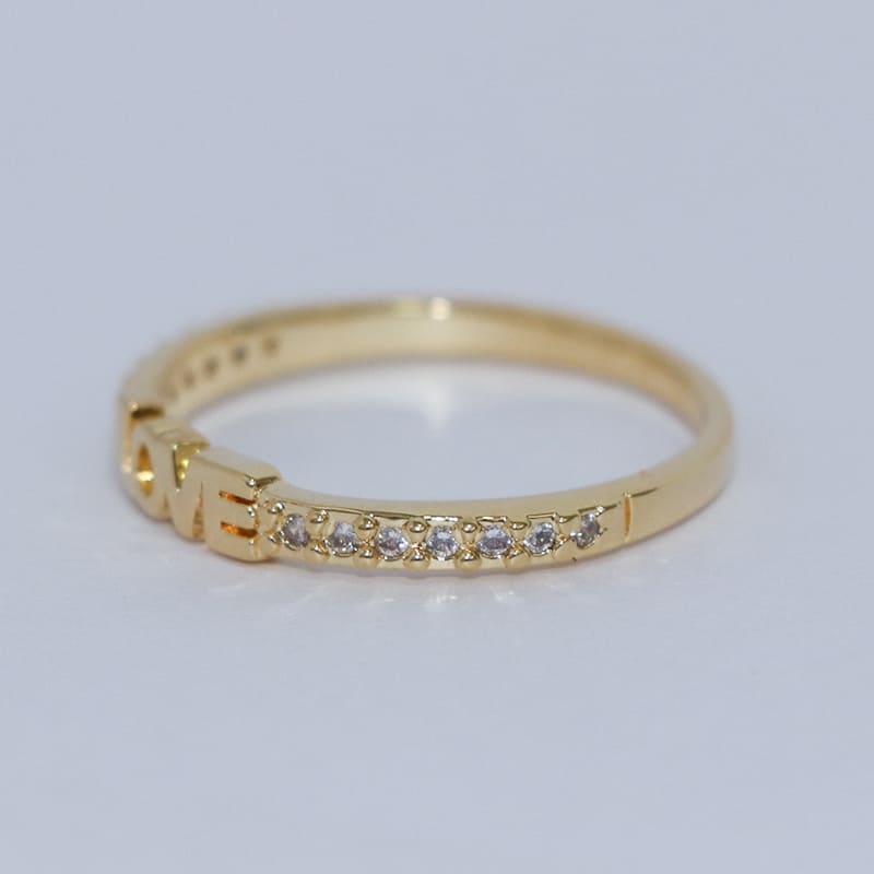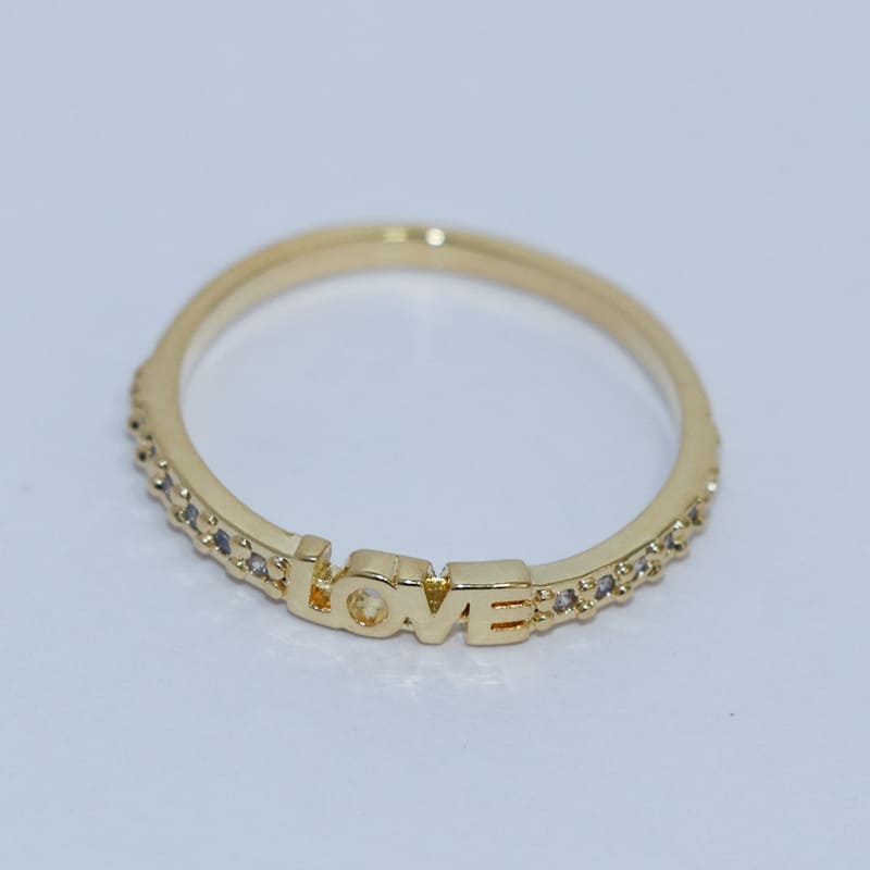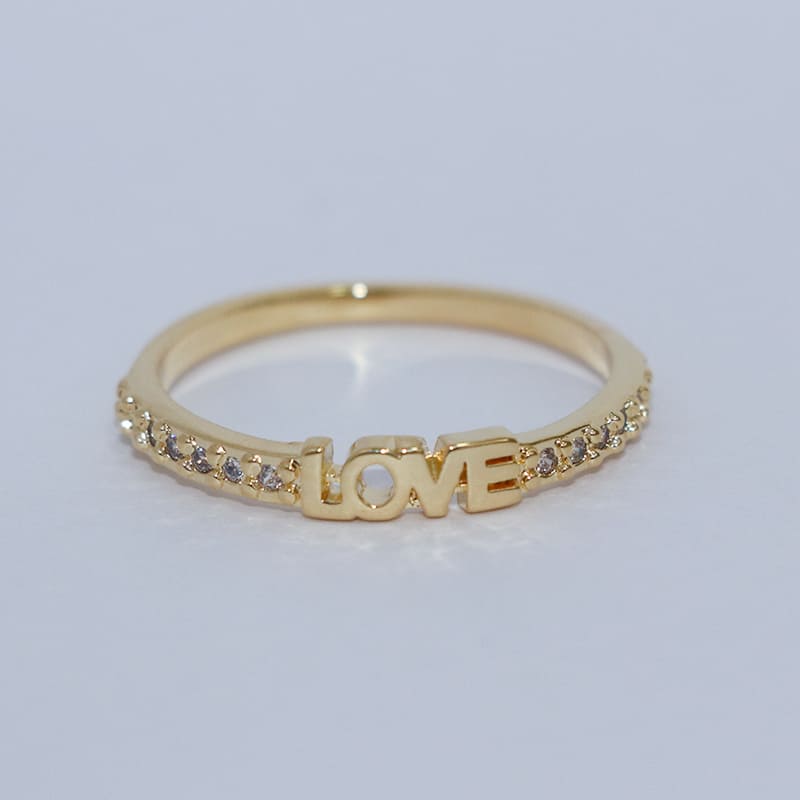 O anel aro cravejado com o escrito “LOVE” é uma expressão elegante de sentimentos. Com um design moderno, apresenta um aro cravejado de pedras preciosas e a palavra “LOVE” no centro, transmitindo uma mensagem de amor. Ideal para uso pessoal ou como presente.