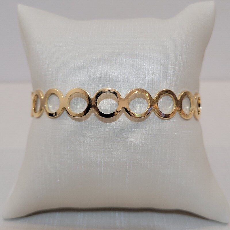 Bracelete com design de círculos vazados, moderno e elegante. Confortável e resistente, ideal para dar um toque de estilo e originalidade ao seu visual.