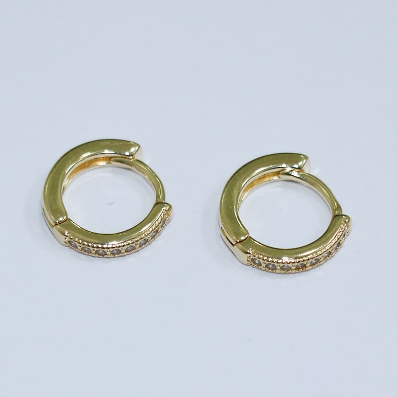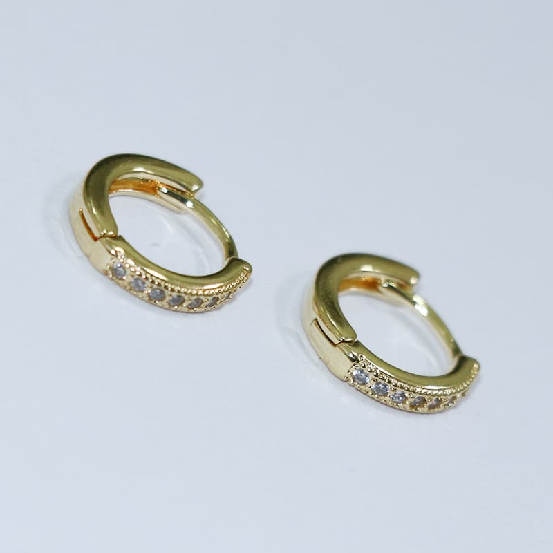 O brinco argolinha cravejada com 1 fileira é uma peça deslumbrante que adiciona um toque de brilho ao seu visual. Com uma fileira de pequenas pedras preciosas cravejadas ao redor, este brinco é perfeito para uso diário ou ocasiões especiais.