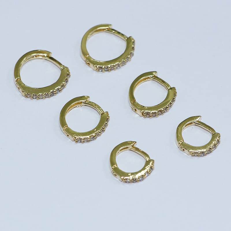 BRINCO TRIO ARGOLINHA CRAVEJADAS REDONDO CRISTAL (10MM, 14MM