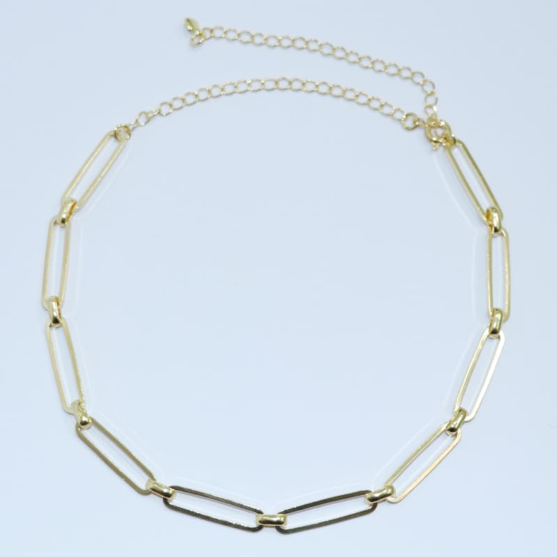 A choker elos largos é uma peça ousada com uma corrente robusta e elos largos, ideal para adicionar um toque de estilo marcante ao seu look.