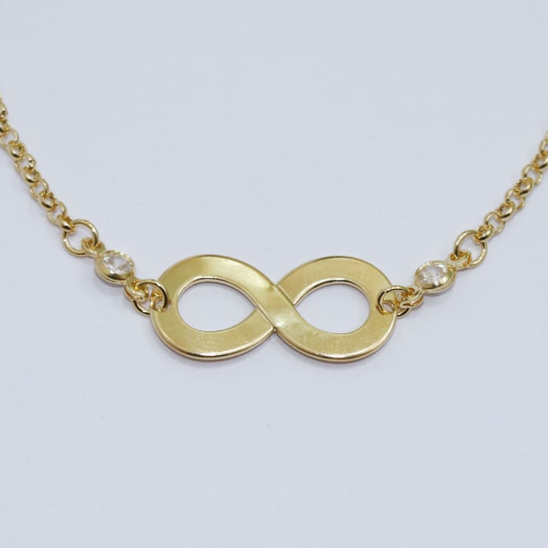 A pulseira com o símbolo do infinito é uma peça elegante e simbólica que representa continuidade e eternidade. Com um delicado pingente em forma de infinito, esta pulseira é feita com materiais de alta qualidade e é resistente ao desgaste diário. Além de ser uma bela peça de joia, o símbolo do infinito carrega um significado profundo, tornando esta pulseira um presente especial ou um lembrete pessoal dos laços duradouros.
